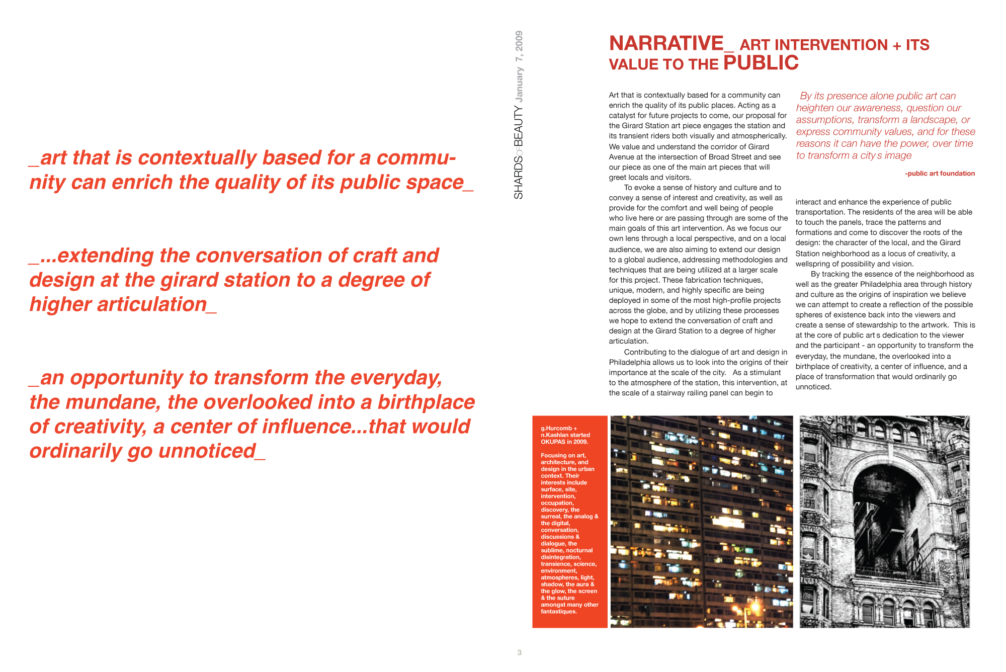 an opportunity to transform the everyday, the mundane, the overlooked into a birthplace of creativity, a center of influence... that would ordinarily go unnoticed.